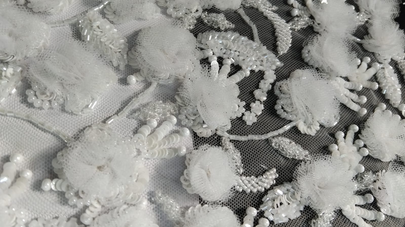 Ivory Zari Embroidered Net Fabric